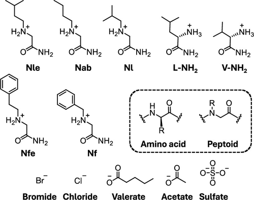 Below is shown Peptoid and Amino Acid Amides and Counterions Studied.